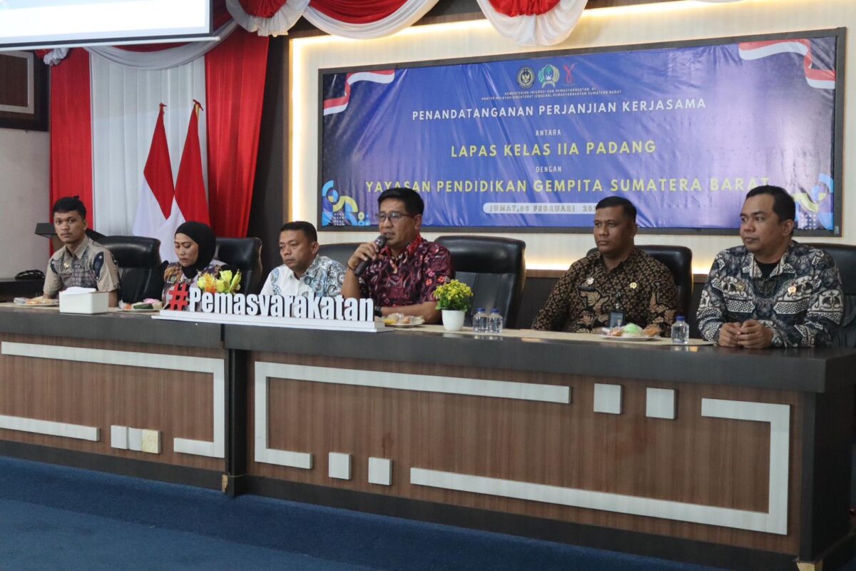 Lembaga Pemasyarakatan Kelas IIA Padang secara resmi menjalin kerja sama dengan Yayasan Pendidikan Gempiya Sumatera Barat melalui penandatanganan Perjanjian Kerja Sama (PKS) yang dilaksanakan di Aula Saharjo Lapas Padang, Jumat (6/2/2026).
