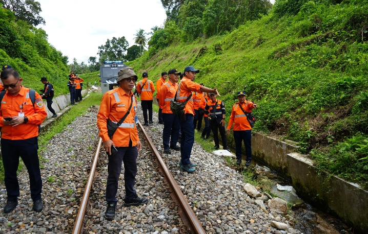 Adapun pemeriksaan dilakukan secara komprehensif terhadap kondisi rel, bantalan, ballast, wesel, sistem persinyalan, keamanan emplasemen, aset PT KAI, kondisi perlintasan sebidang, serta sistem drainase di sepanjang jalur. Pemeriksaan juga difokuskan pada lokasi-lokasi yang sebelumnya terdampak banjir dan galodo.