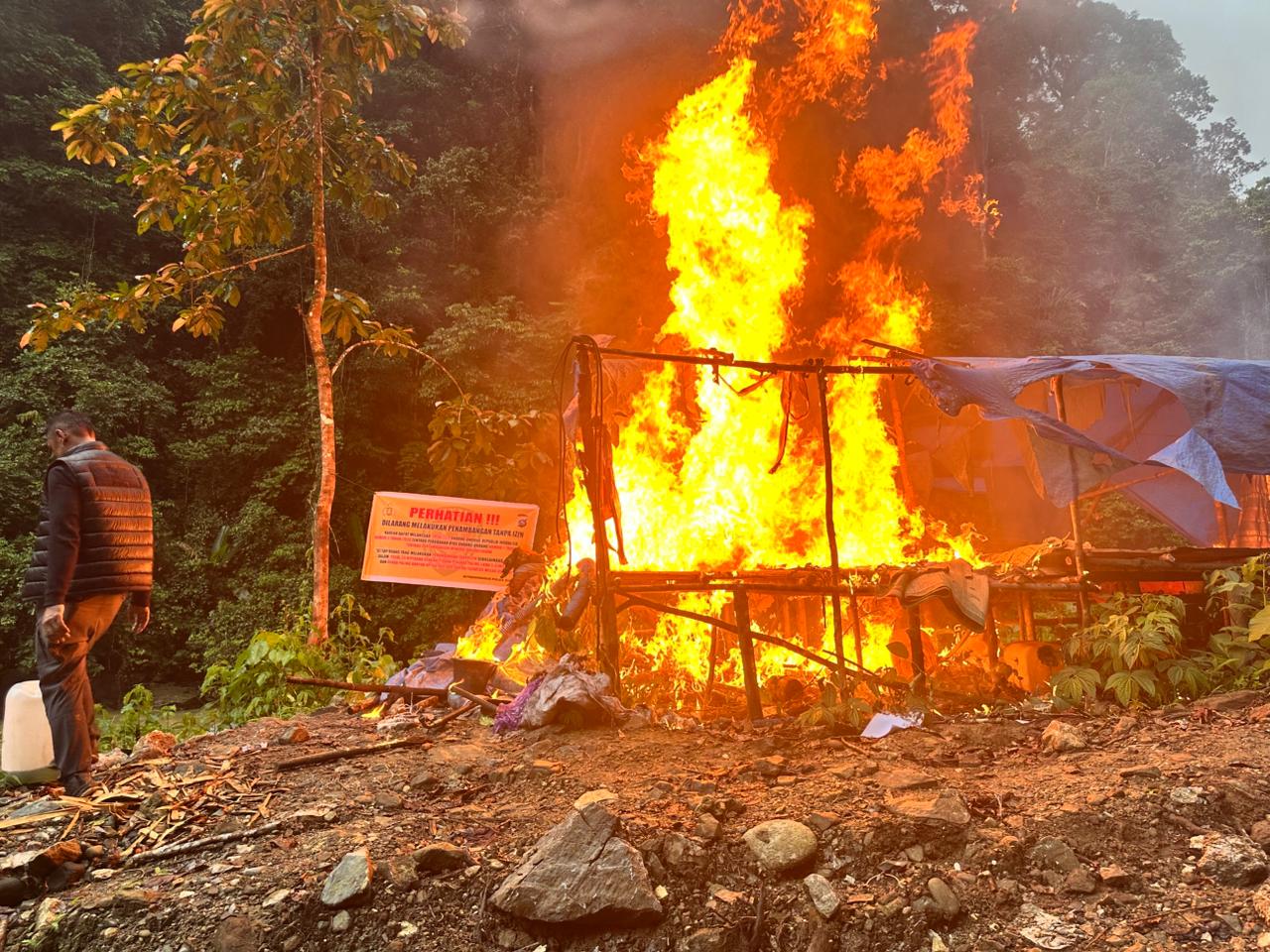“Di lokasi Muaro Tambangan ini, tim menemukan satu unit alat berat, box alat penyaring, serta tenda-tenda pekerja. Monitor alat berat telah kami sita untuk kepentingan penyelidikan, sementara perlengkapan pendukung lainnya dimusnahkan dengan cara dibakar agar tidak dapat dipergunakan kembali,” tegasnya.