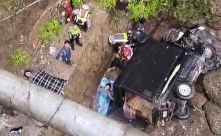“Berdasarkan keterangan awal, kendaraan hilang kendali karena jalan licin sehingga masuk ke jurang,” katanya.